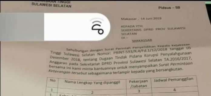 Dalam Sprindik tersebut terjadwal kan hari Senin tanggal 01 Juli 2019 hingga 08 Juli 2019 ke-18 Anggota DPRD Sulsel tersebut harus sudah terperiksa. Diantara ke-18 Anggota DPRD Sulsel yang terpanggil tersebut, sekitar 6 diantaranya adalah Bakal Calon yang ingin maju sebagai Kepala Daerah di Sulsel.