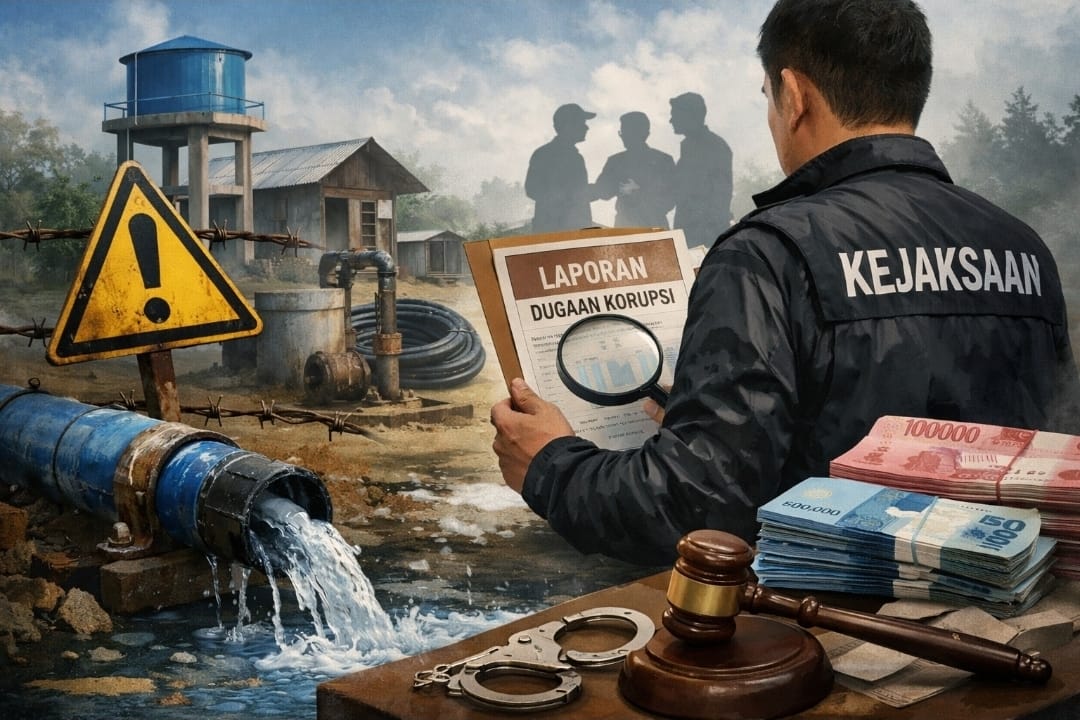 Lembaga Swadaya Masyarakat Komunitas Peduli Lingkungan Ekonomi Sosial (L-Kompleks) melaporkan proyek Peningkatan Sistem Penyediaan Air Minum (SPAM) jaringan perpipaan yang dibiayai Dana Alokasi Umum (DAU) Earmark Tahun Anggaran 2024 ke Kejaksaan Negeri Jeneponto, Senin (29/12/2025).