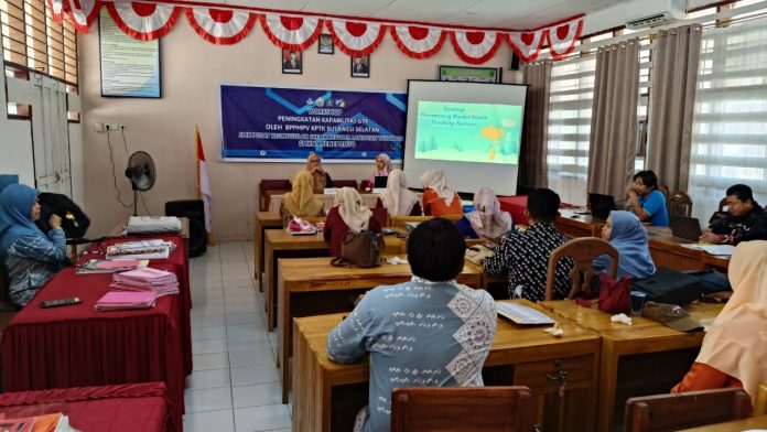 Panrita News, Jeneponto | Workshop Peningkatan Kapabilitas Guru dan Tenaga Kependidikan (GTK) oleh BPPMPV KPTK Sulawesi Selatan (Balai Pengembangan Penjaminan Mutu Pendidikan Vokasi Bidang Kelautan Perikanan Teknologi Informasi & Komunikasi) dalam rangka kegiatan Pendampingan Sekolah Menengah Kejuruan Pusat Keunggulan (SMK PK) oleh Politeknik Pertanian Negeri Payakumbuh yang dilaksanakan di Sekolah Menengah Kejuruan Negeri 4 Jeneponto (SMKN 4 Jeneponto), jalan Tanatoa, Desa Kalimporo, Kecamatan Bangkala, Kabupaten Jeneponto, Kamis (12/09/2024).