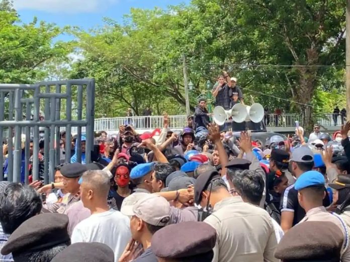 Panritanews.comĀ | Aksi unjuk rasa di depan gedung DPRD Sulawesi Tenggara (Sultra) pada Senin (1/9/2025) sempat memanas. Sejumlah massa yang tidak terkoordinir melempari bagian timur kantor dewan dengan batu hingga memecahkan kaca.
